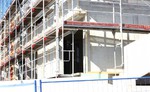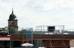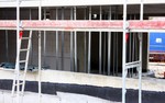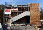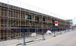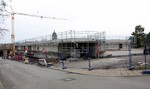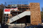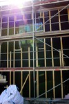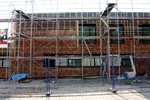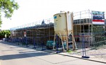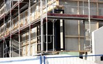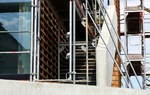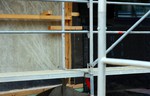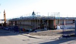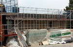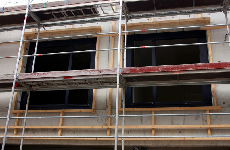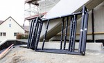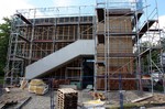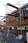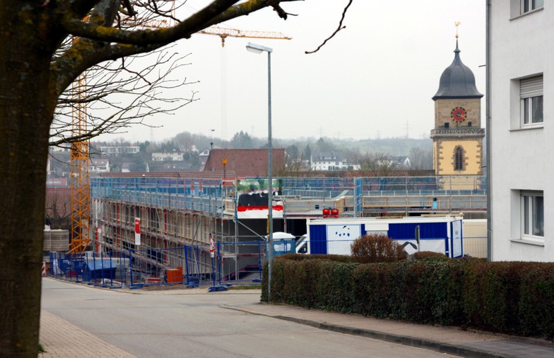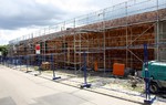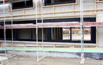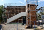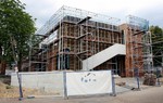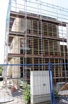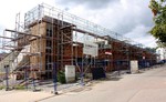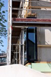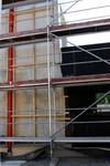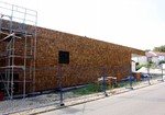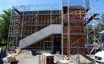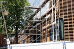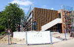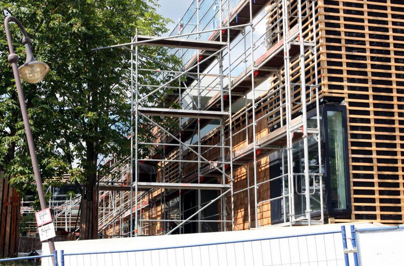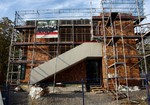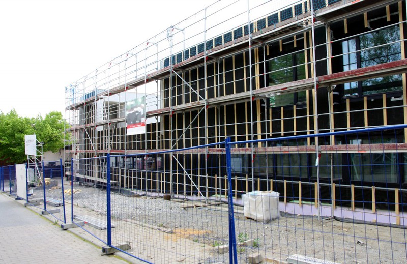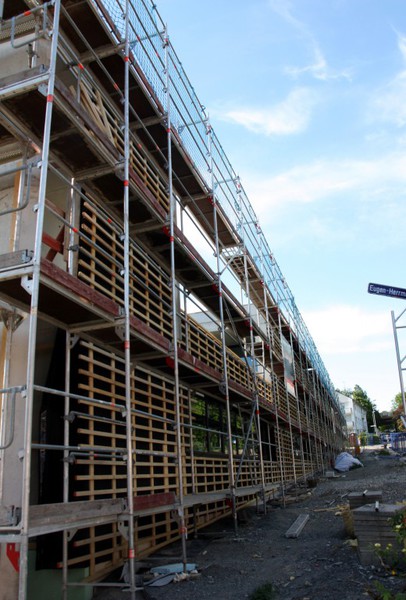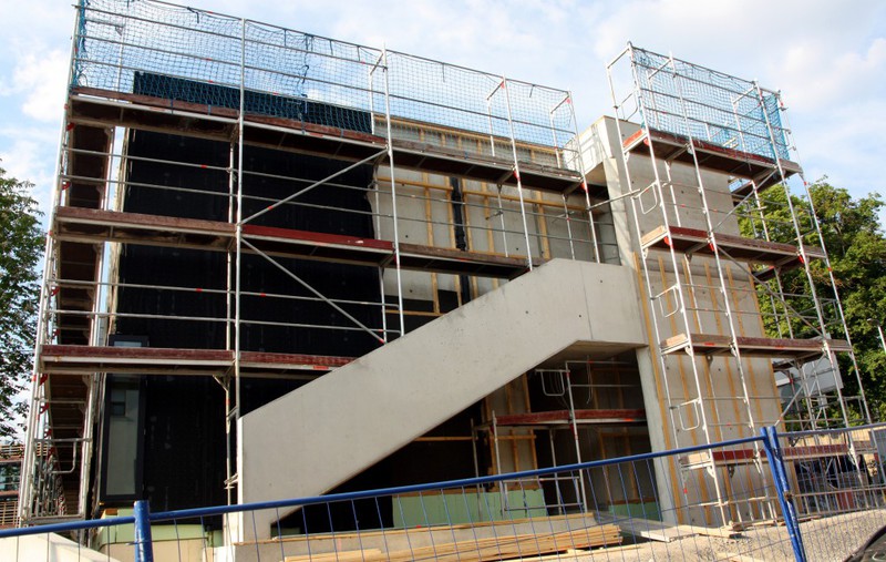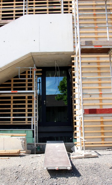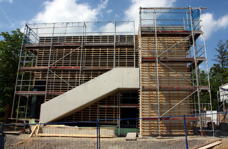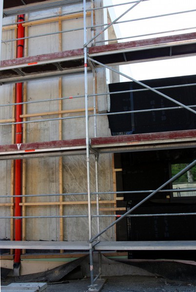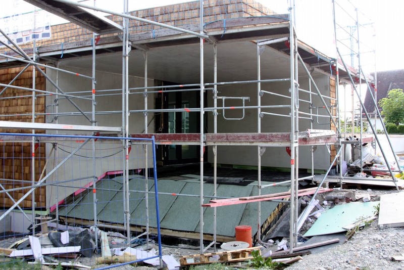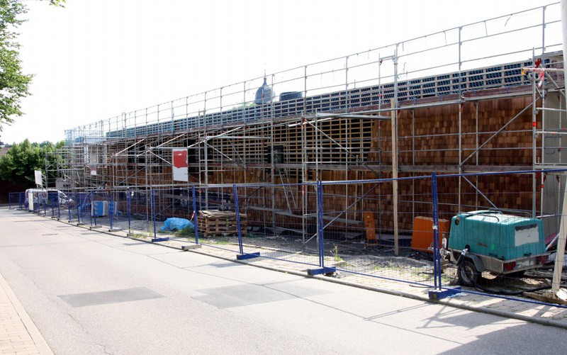 kann. Zudem erhält der Eingangsbereich eine Zugangstreppe. An der Vertäfelung der Außenfassade tut sich gerade recht wenig. Diese müsste aber abgeschlossen sein, damit überall die Gerüste entfernt