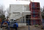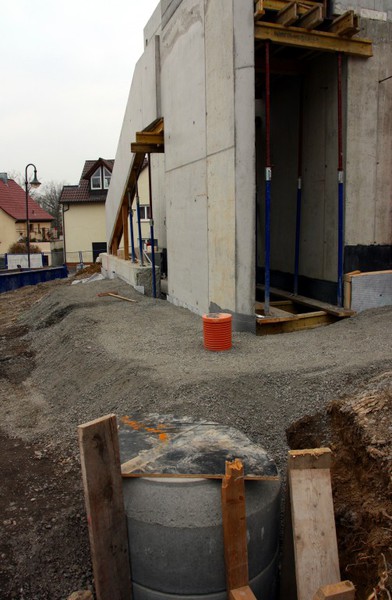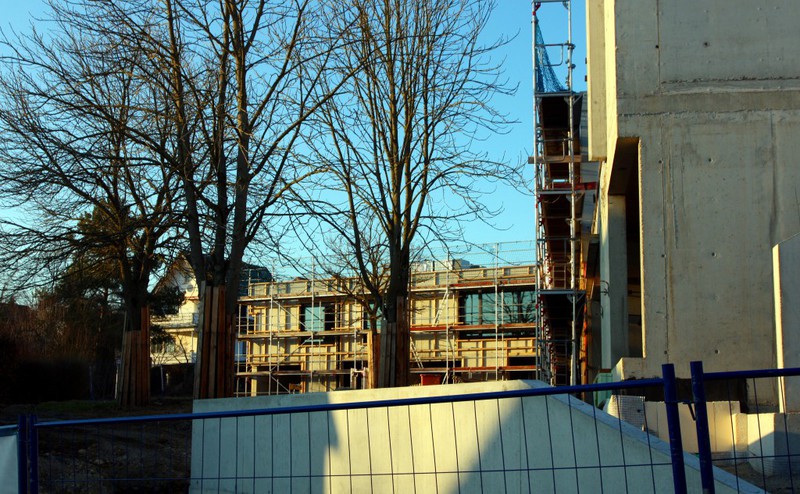 Es wird wohl den Temperaturen geschuldet sein, dass an der Fassade des Neubaus gerade nicht viel passiert. Die Dämmung wird schon noch kommen… Stattdessen fokussieren sich die Arbeiten im Innenbereich. Außen wurde noch was betoniert. Was daraus wird, man wird es sehen...