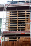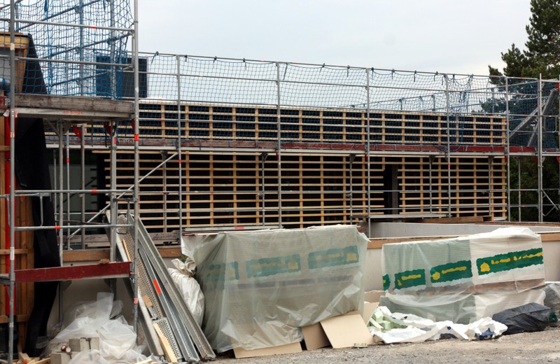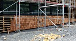 Die Arbeiten an der Gebäudefassade lassen sich in dieser Woche einfach zusammenfassen: Die Holzvertäfelung wächst weiter.