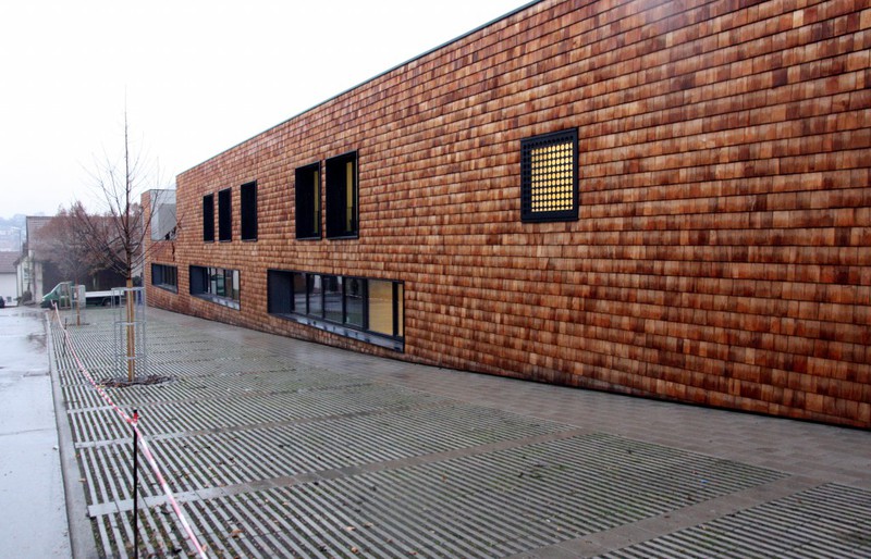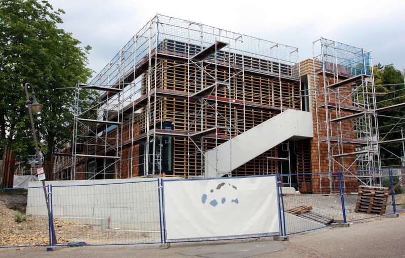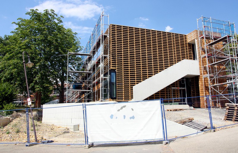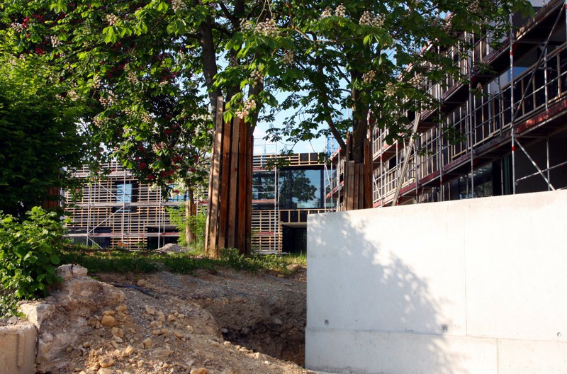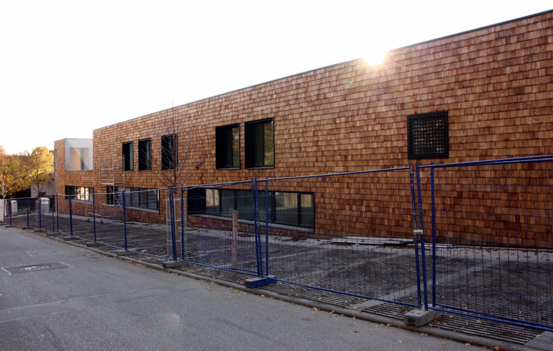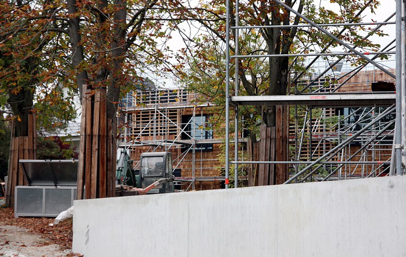 öffentlichem Grund nur bedingt einsehbar. Dafür scheint die Holzvertäfelung an der Südseite des Gebäudes nun endlich abgeschlossen zu sein.