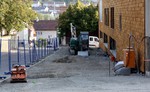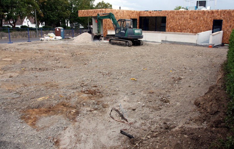 Die Bauferien der Firma für die Außenanlagen sind vorbei und es wurde in dieser Woche die Fläche oberhalb des neuen KiTa komplett eingeebnet. Mal schauen, ob in der