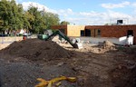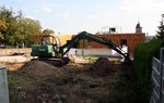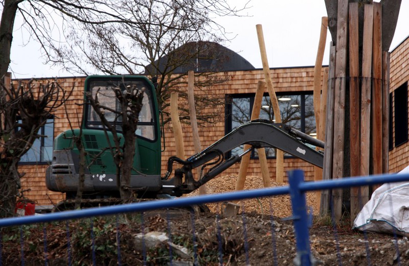Spielbereich des KiTa. Dort sind die Bagger gut am Arbeiten.