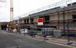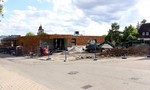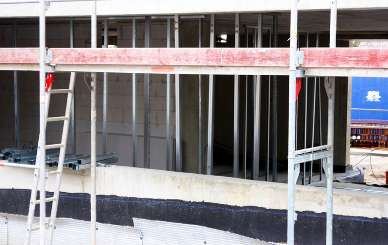 Beim Innenausbau sind von außen sichtbar die ersten Trockenbauwände verbaut worden. Im Außenbereich sind zudem Gräben verfüllt worden.