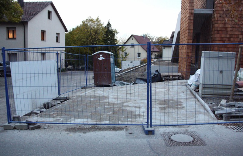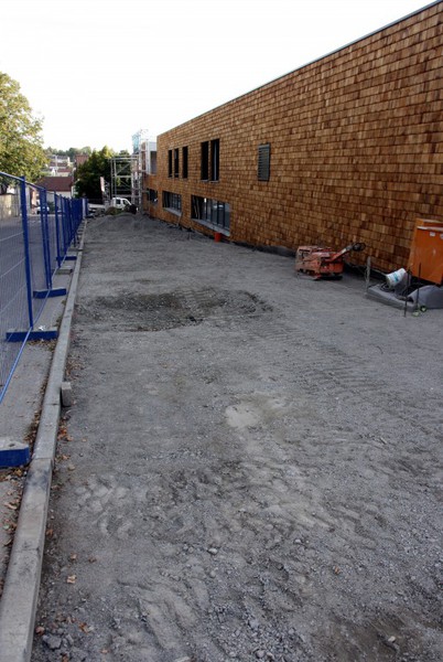 Außenarbeiten hätte in dieser Woche ein Bautrupp für die Außenanlagen und die Parkplätze aktiv sein sollen (Siehe --> hier und dort in der Vorlage auf S. 7).