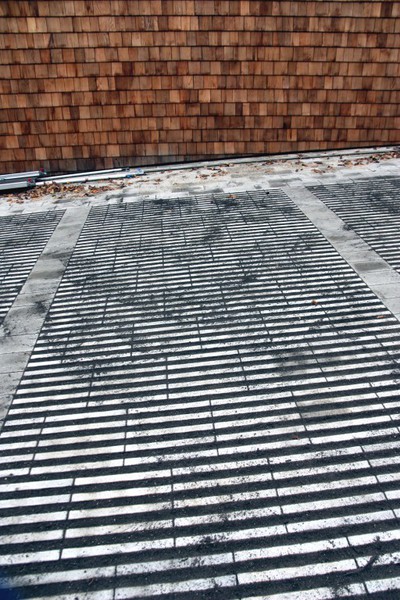 Es geht weiter an der Holzfassade. Auf dem Dach wurde um die technischen Aufbauten eine Absperrung errichtet. Ist diese temporär oder dauerhaft?