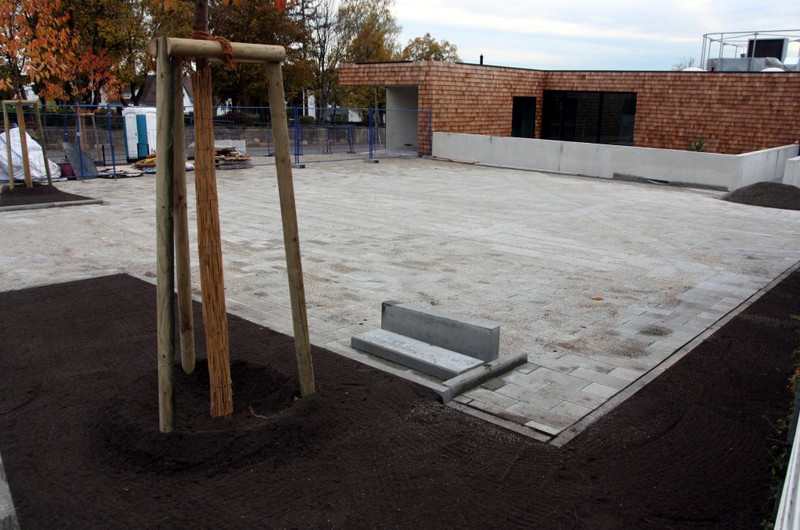 Die Außenanlagen des neuen KiTa nehmen so langsam Gestalt an. Erste Randsteine und Einfassungen sind gesetzt und das Areal ist weitestgehend eingeebnet. Mal sehen ob die