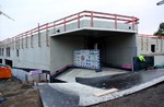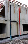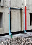 Am südlichen Gebäudeteil sind nun alle Verschalungen entfernt. Das Gebäude wurde an die Stromversorgung angeschlossen und ein Schacht für das Abwasser gesetzt. Zudem