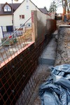 Im südlichen Teil gibt es Erweiterungen für die Verschalung der neuen Treppe. Des Weiteren wurde die bereits angebrachte Gebäudeabdichtung im UG eingegraben und es laufen die Vorbereitungen für die Dämmung der Fassade.
