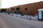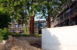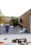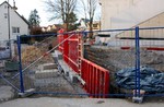 Der Zugangsweg zu den Außenanlagen ist abgesperrt, so bleibt ein neuer Blick auf die Arbeiten dort verwehrt. Vermutlich hat sich witterungsbedingt hier in dieser Woche