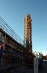 In dieser Woche gab es äußerlich keine großen Baufortschritte. Zumindest umschließt das Baugerüst jetzt das komplette Gebäude und es wurden oben herum Fallnetze