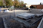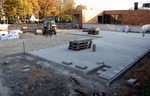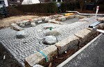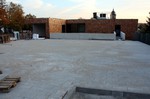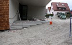 Jetzt wird ein Zahn bei den Arbeiten an den Außenanlagen zugelegt. In dieser Woche ist das Pflaster für die Parkplätze begonnen verlegt zu werden. Im oberen Teil ein