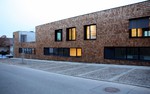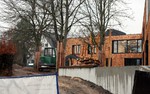 Die Arbeiten an der KiTa Pusteblume befinden sich auf der Zielgeraden. Die Holzvertäfelung scheint abgeschlossen zu sein, die Pflanzbereiche sind mit Erde gefüllt und das
