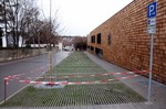 Fahrzeuge ragen in den Gehweg hinein. Aber es besteht ja noch die Change entsprechende Absperrungen anzubringen. Wenn am Parkplatz oberhalb des Gebäudes noch Markierungen angebracht werden, kann man