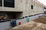In dieser Woche hat sich an der Außenhülle des Gebäudes nur wenig getan. Im Sockelbereich wurde eine Dämmung verbaut und der Treppenaufgang am südlichen Gebäudeteil bekommt noch ein kleines Dach. Ansonsten konzentrierten sich die Arbeiten auf den Innenausbau, was man von außen hören aber nicht sehen kann.