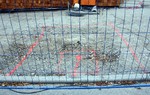 am südlichen Ende des Geländes gegossene Fundament. Es ist eine Mauer daraus entstanden. Des Weiteren gibt es Aktivitäten auf dem Dach. Hier wird die Dämmung verbaut. Im Inneren sind die Elektriker