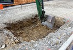 der Zugangsweg zum Eingang der KiTa. Es wird wieder gebaggert.