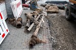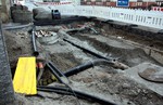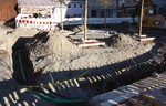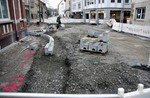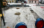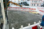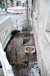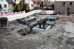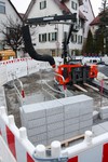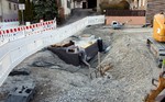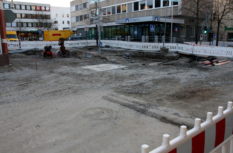 Die Winterpause ist vorbei und die Arbeiten haben wieder gestartet. Wohl am auffälligsten ist hierbei die Sperrung der Bahnhofstraßenkreuzung. Das ist auch einer der Stellen, wo nun schwerpunktmäßig gearbeitet wird. Als zweites haben die Verlegearbeiten für die Gehwege wieder begonnen. An anderen Stellen und am Vaux-le-Pénil-Platz hat sich hingegen nur wenig getan. Hier wurden in die Brunnenstube, dem in die Erde versenkten Betonkubus, Löcher gebohrt. Zeitgleich haben die Arbeiten am 2. Bauabschnitt begonnen. Die Bilder von dort sind in einer eigenen Galerieseite zusammengefasst.