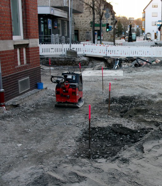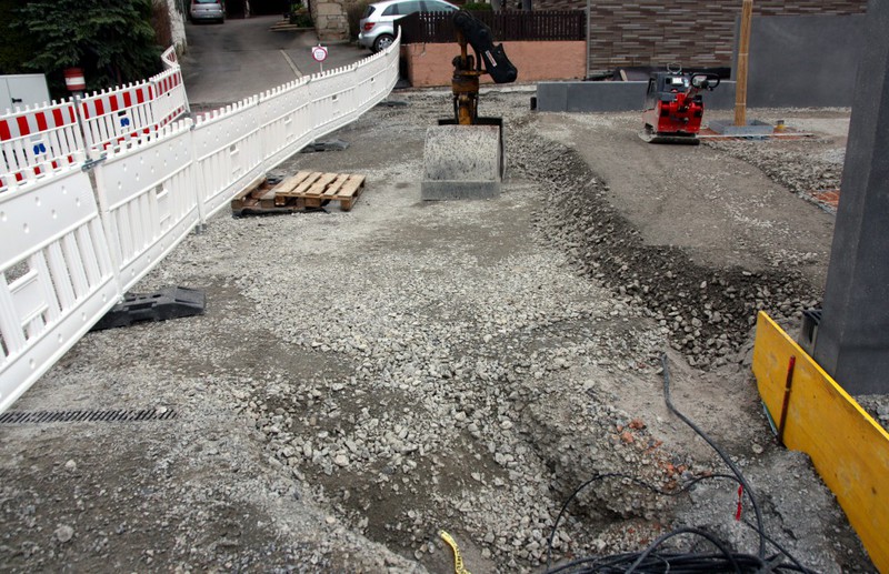 Asphalt ausgebracht werden kann oder Pflaster verlegt werden können. Laut der Mitteilung im Mitteilungsblatt 9/2018 gehen die Arbeiten in Form von Tiefbauarbeiten (im Bauabschnitt 2) baldmöglichst