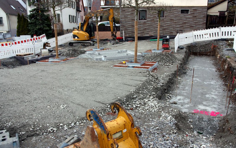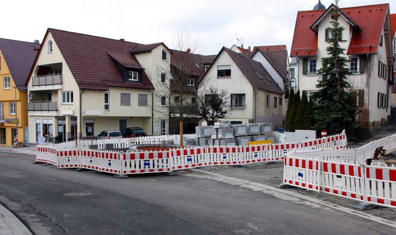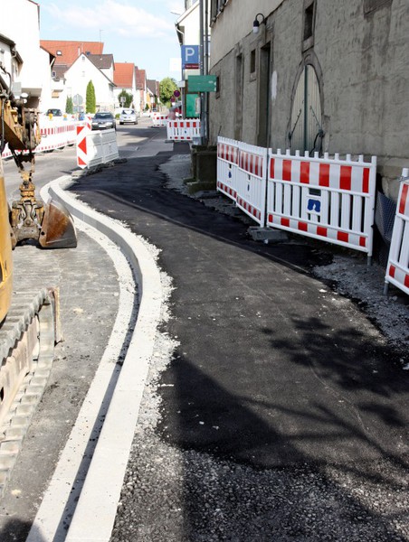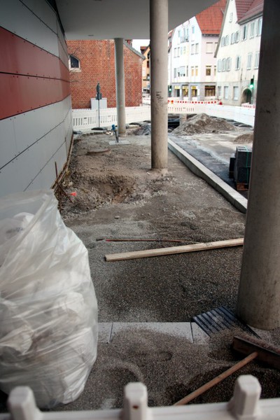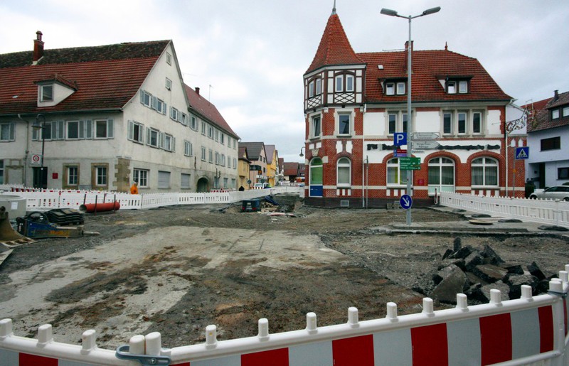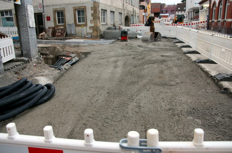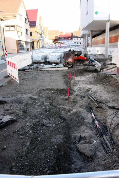 Durchfahrt zwischen der Bahnhofstraße und der Ludwigsburger Straße möglich. Die Materiallager in der Stuttgarter Straße wurden hierzu bereits weggeräumt. Bisher hatte die Baustelle mit dem Wetter ja
