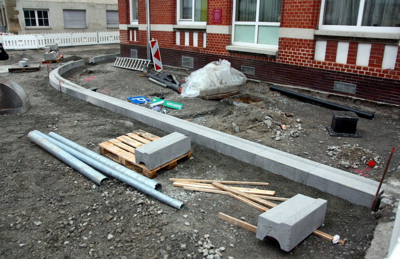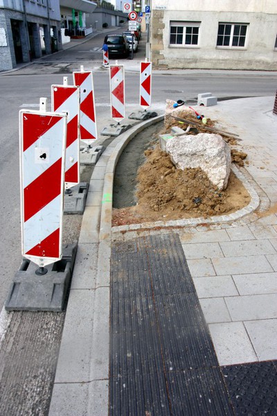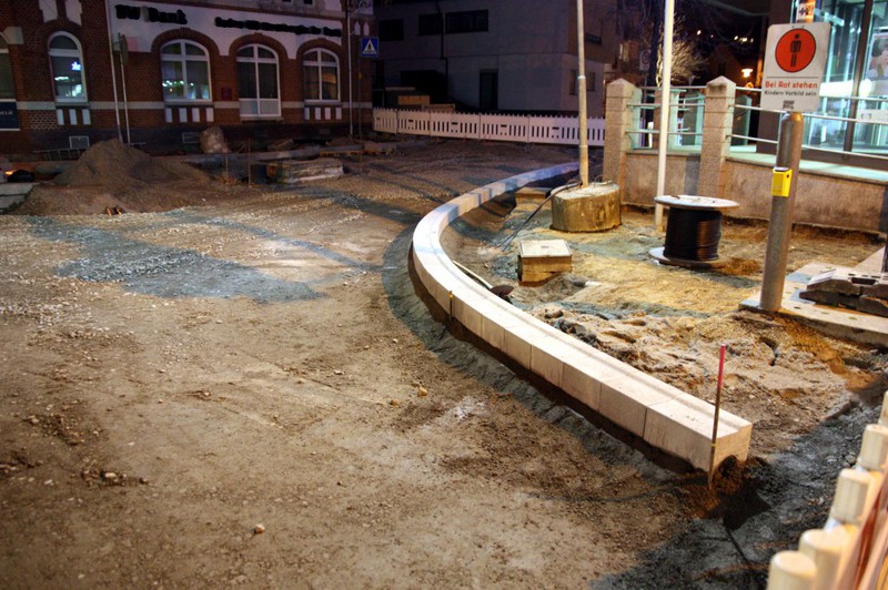 - Setzen der Randsteine rund um die Bahnhofstraßenkreuzung