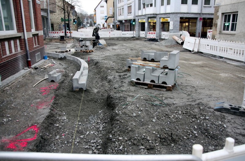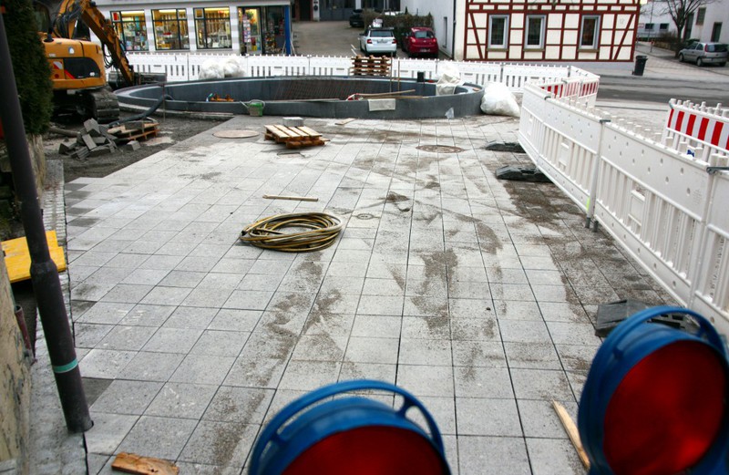 Die Pflasterarbeiten an den Gehwegen in Bauabschnitt 1 schreiten voran, sind aber voraussichtlich bis Ende Januar nicht abgeschlossen. Der Vaux-le-Pénil-Platz liegt weit zurück, um als Teil des 1. Bauabschnitts ebenfalls bis Ende Januar fertig zu sein. Laut der Aussage vom Bauamt befindet sich die Spezialfirma für den Aufbau der Wasserspiele noch in der Winterpause. Sie sei aber bereits rechtzeitig beauftragt worden.