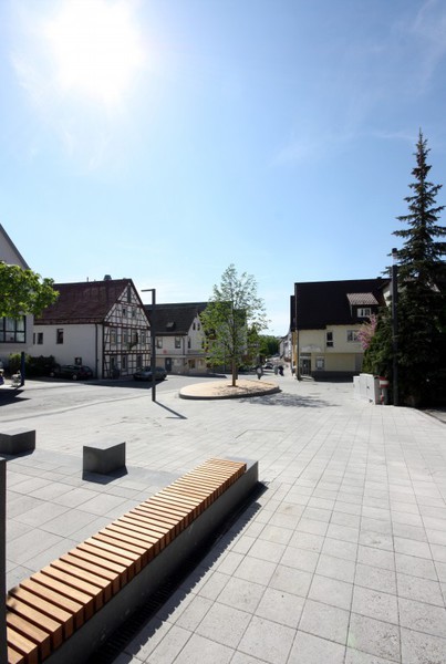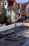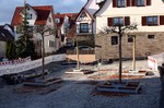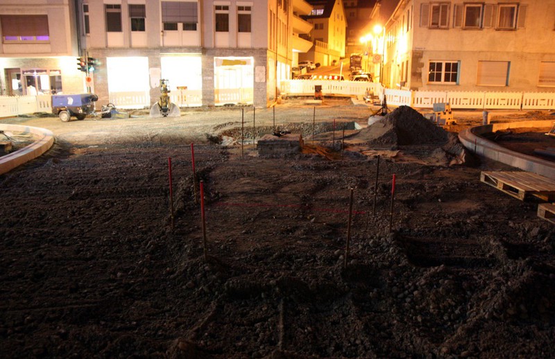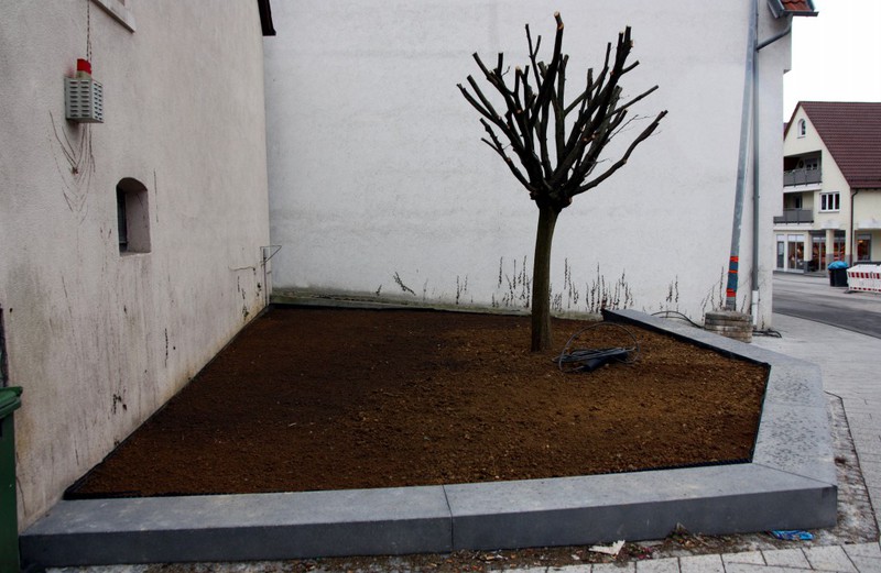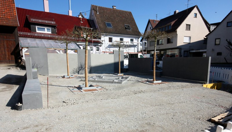 Beim Vaux-le-Pénil-Platz erkennt man eine kleine Änderung. Dort hat man in dieser Woche das Oval für die Sitzgelegenheit um die künftige neue Ortslinde eingemessen. Die