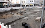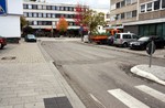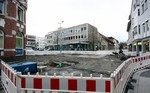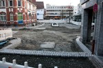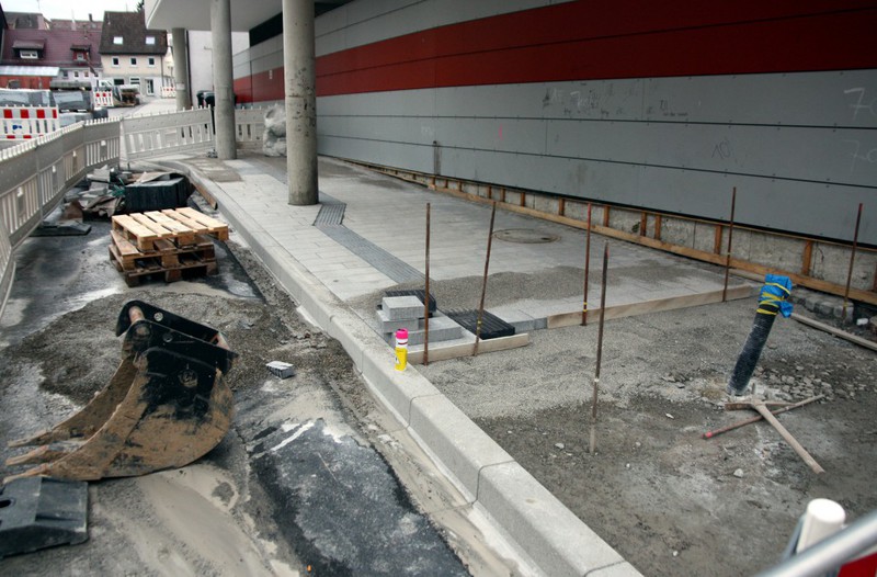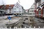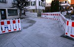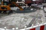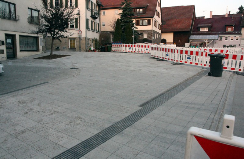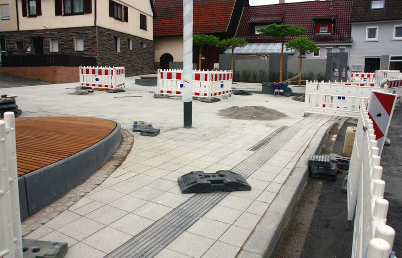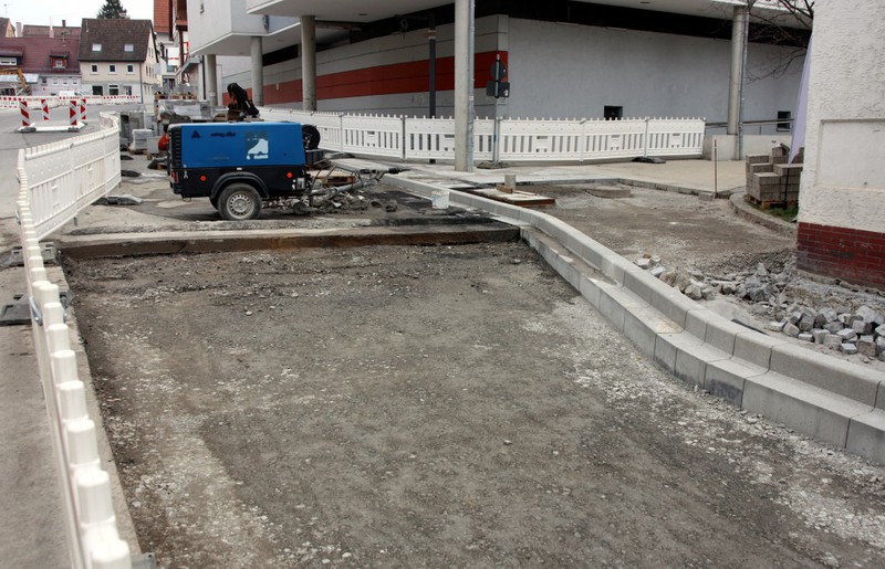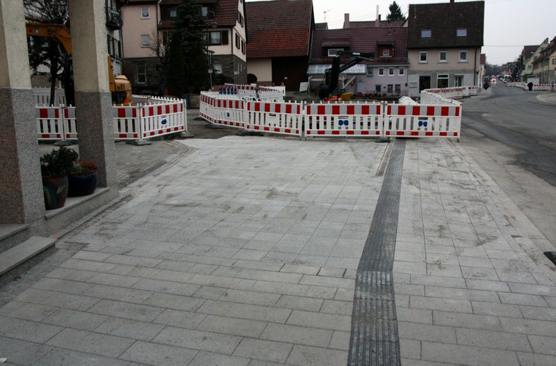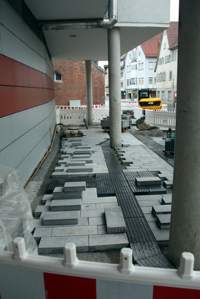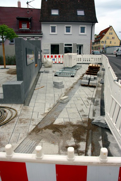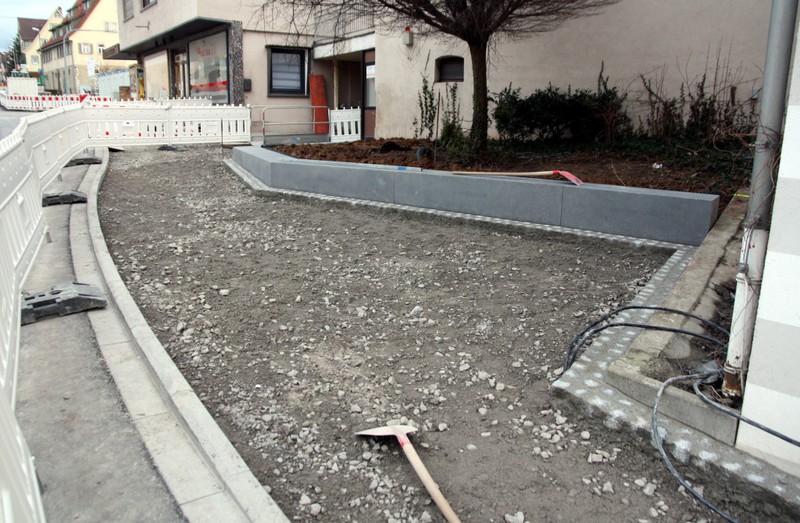 Am Vaux-le-Pénil-Platz ging es ebenso weiter. Hier wurden die Pflasterarbeiten fortgesetzt. Am anderen Ende des Bauabschnitts 1 in Richtung der Ludwigsburger Straße ist