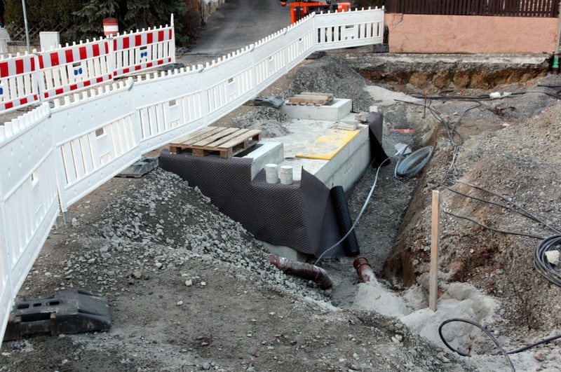 Ortsausgang. Auf ca. 1,2 km Länge werden Leitungen und Kanäle im Untergrund erneuert und danach die Straßen- und Gehwegflächen neu angelegt. Hinzu kommen die Sanierung des