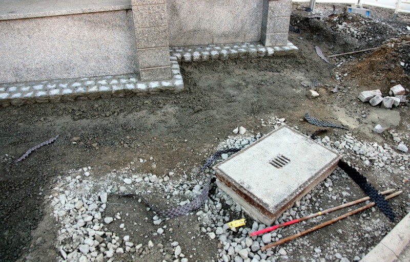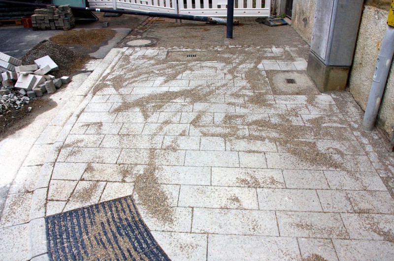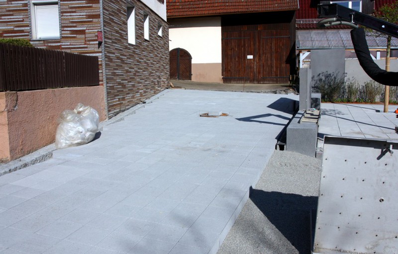- Weiterarbeit an den Pflasterarbeiten an den Gehwegen