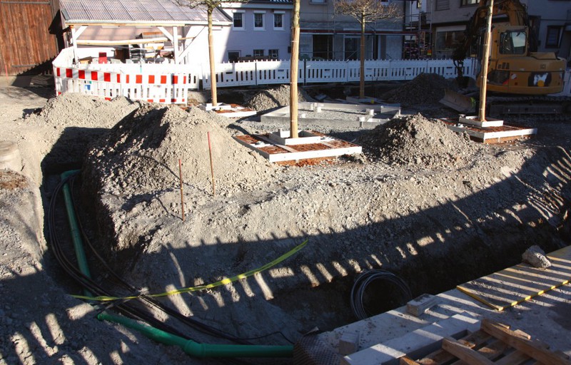 Ab Mittwoch wurde das Fundament für das Buswartehäuschen freigelegt und dasselbe aufgestellt. Ganz fertig geworden ist man aber noch nicht. Vorhanden ist derzeit nur eine