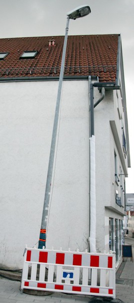 anderen Baustellen in Schwieberdingen wurden bisher immer die neuen Masten mit LED-Leuchtkörpern vor dem Pflastern oder Asphaltieren der Gehwege gesetzt. In der Stuttgarter Straße ist hier eine