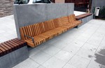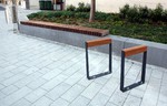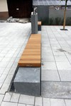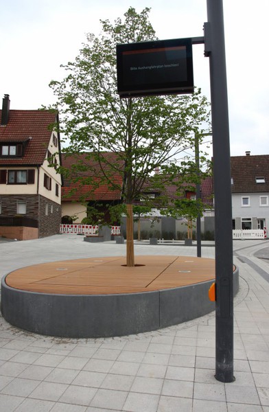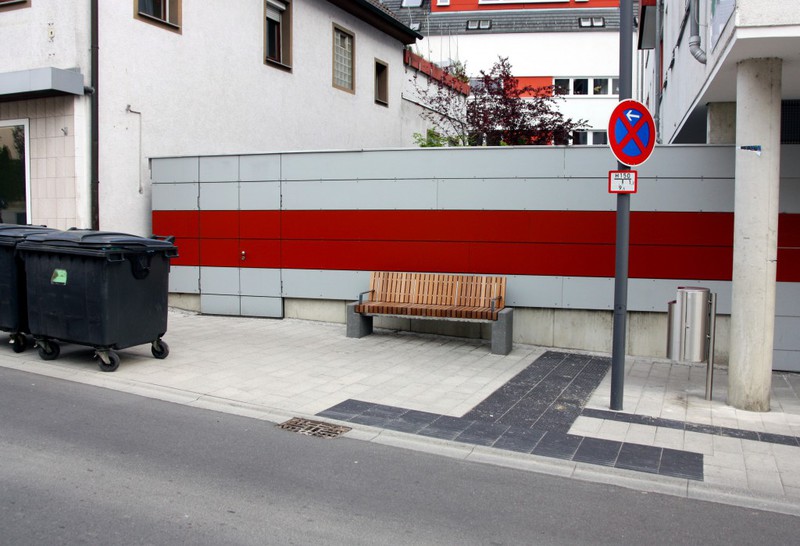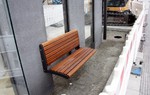 An der Bushaltestelle Mitte gibt es weitere neue Sitzbänke. So nimmt die einheitliche Möblierung der Stuttgarter Straße weiter Gestalt an. Und eine zu hörende Aussage,