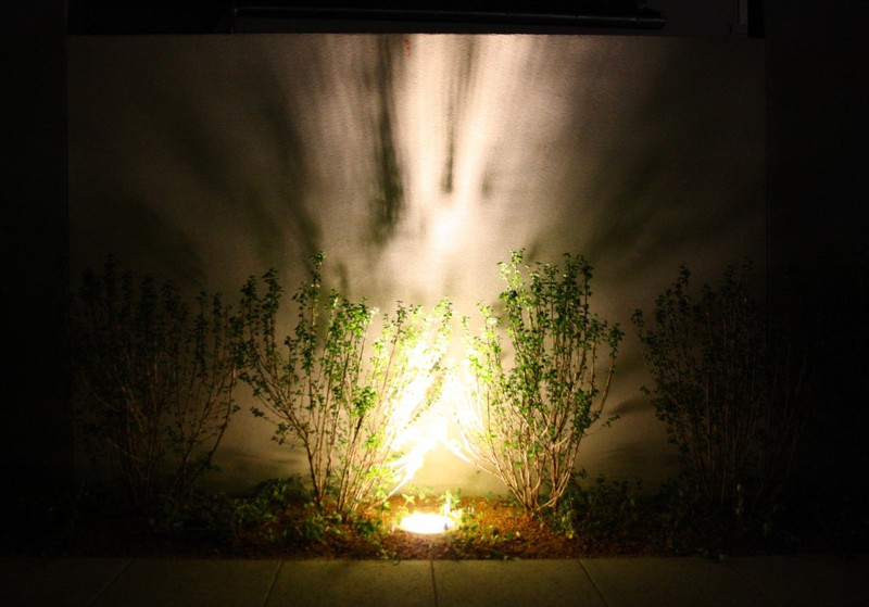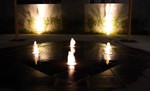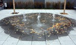 Vaux-le-Pénil-Platz an. Die Wandelemente sind optisch ähnlich zu der Umrandung des Wasserspiels.