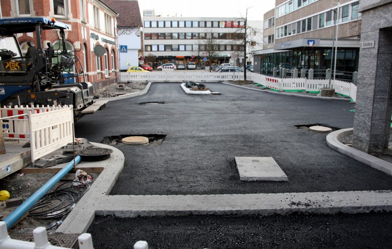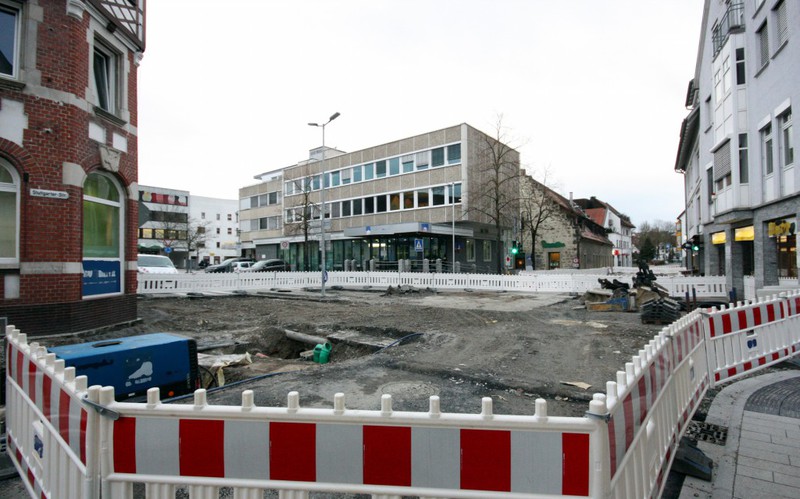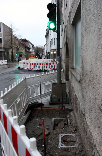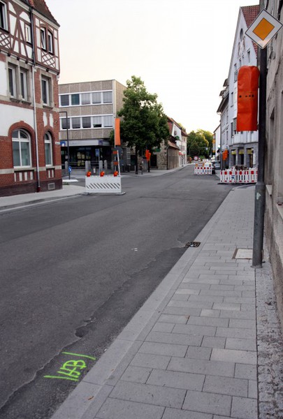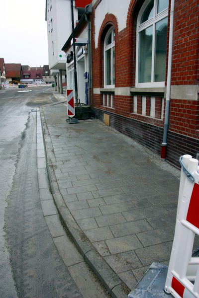 gepflastert, aber die dort noch befindlichen Baugräben werden sicherlich noch zugeschüttet. Die Ampel am Ochsen steht an ihrem alten Platz und der Gehweg ist nun durchgängig vorhanden.
