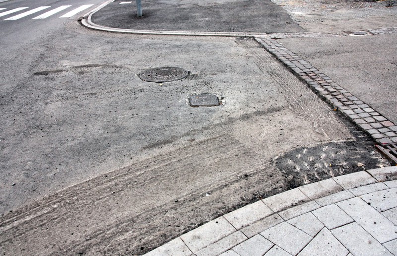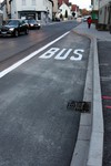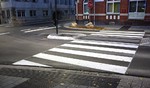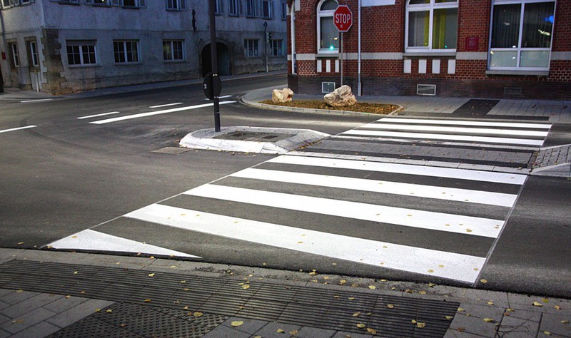 Nach der finalen Asphaltdeckschicht fehlten noch die Fahrbahnmarkierungen und Zebrastreifen. Zudem gab es an der ein oder anderen Stelle noch nachträglich Säulen, um