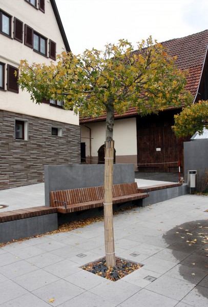Der kleine Platz gegenüber des Vaux-le-Pénil-Platzes hat einen neuen Baum bekommen. Aus der Ulme wurde nun ein Amberbaum.