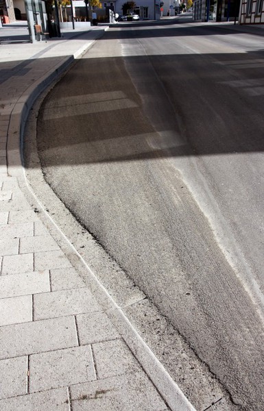 Da in der nächsten Woche zwischen dem 29.-31.10.2018 die finale Asphaltschicht aufgebracht werden soll, sind die Randstein-Schutz-Keile entfernt worden und Vorbereitungen