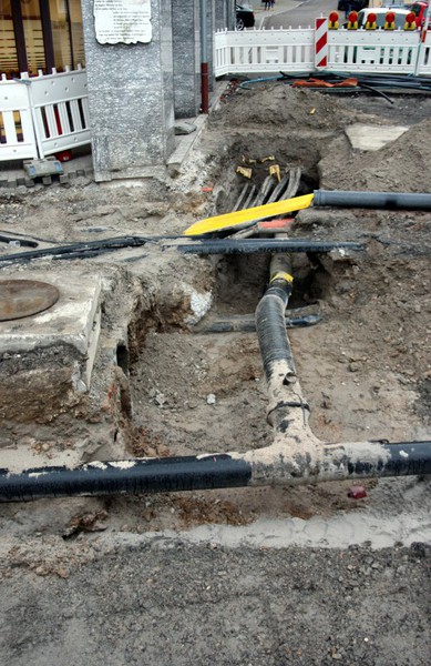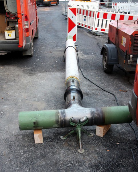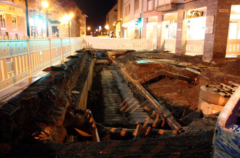 Einbau der Leitung versäumt wurde. Damals wurde die Leitung über einen bestehenden Abwasserkanal verlegt. Im Prinzip gilt das Gleiche auch für die Gasleitung in Richtung Bahnhofstraße. Betrachtet man