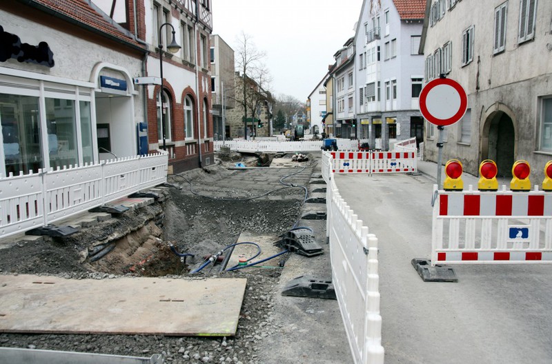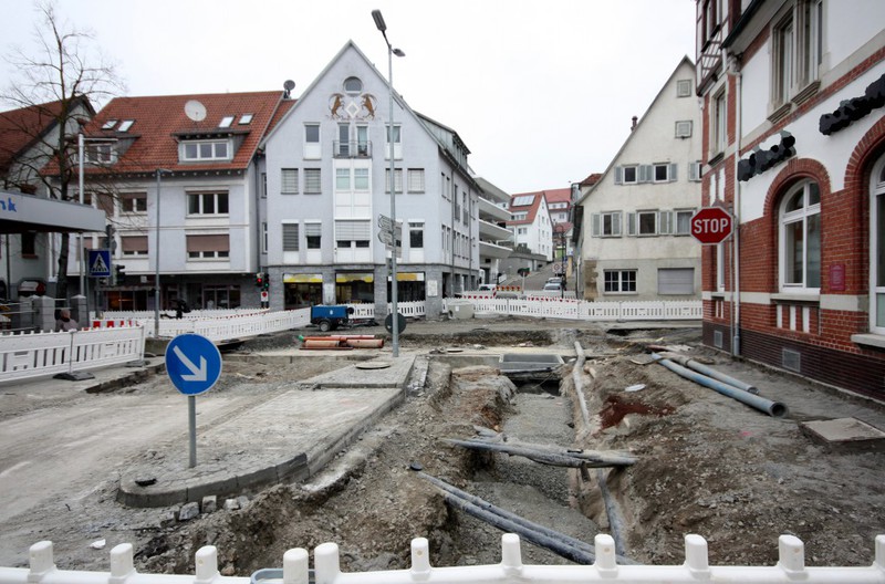 Vollsperrung statt, was technisch durchaus Sinn macht. Wie sollte man den Kreuzungsbereich sonst bearbeiten? Zudem ist noch ein Teil der Stuttgarter Straße gegenüber dem Ochsen geöffnet. Hier liegen
