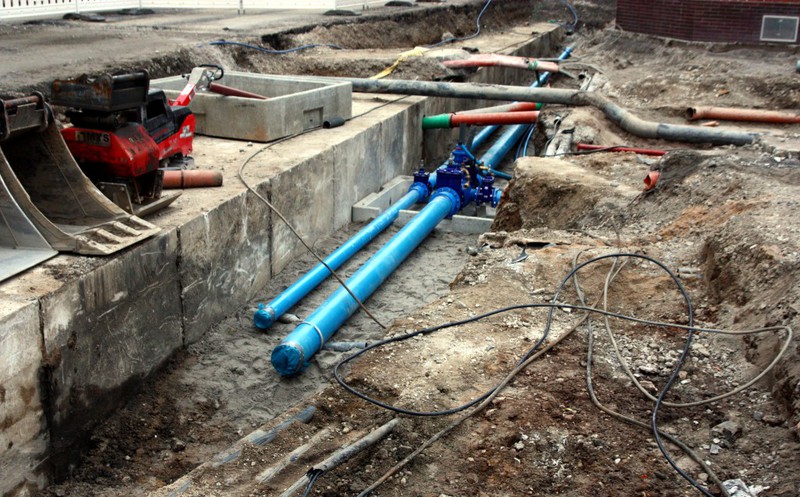 gerade die Enden der neuen Wasserleitungen welche dann weitergelegt werden.