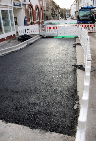 dunkel uns setzt sich besser vom Pflaster des Gehwegs ab. Zudem wurde im Übergangsbereich zum Bauabschnitt 3 der bisher geschotterte Gehweg mit einer Asphaltschicht versehen. Jetzt ist dieser Bereich