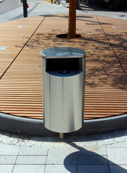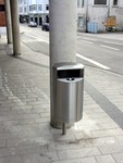 Nach langer Wartezeit gibt es endlich einen "neuen" Mülleimer. Bezogen auf die Bushaltestelle "Mitte" ist er schlecht platziert, aber generell schadet ein neuer Mülleimer