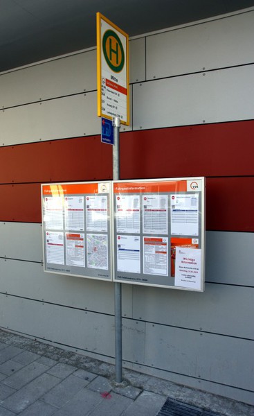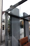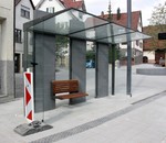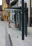 Sitzbank für zwei Personen. Mal sehen, ob das noch mehr wird. Und Vorsicht bei den seitlichen Glasscheiben: Nicht dagegen laufen. Ansonsten passt sich das Wartehäuschen optisch dem