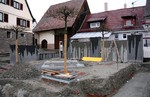 - Bau der Sitzmellipse für die künftige Ortslinde auf dem Vaux-le-Pénil-Platz