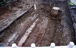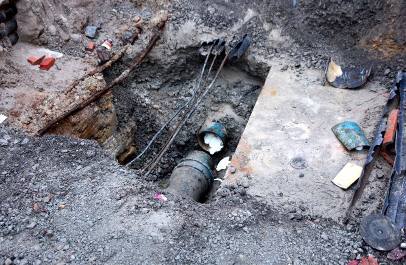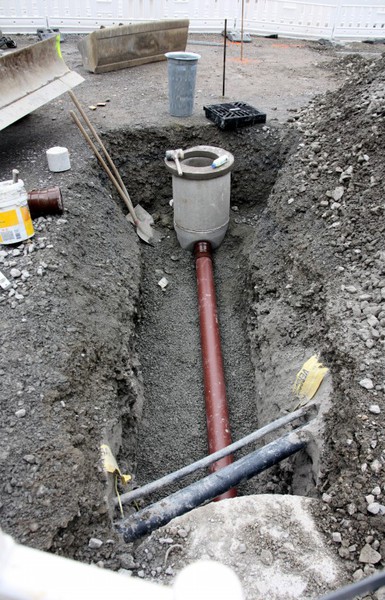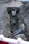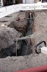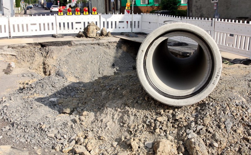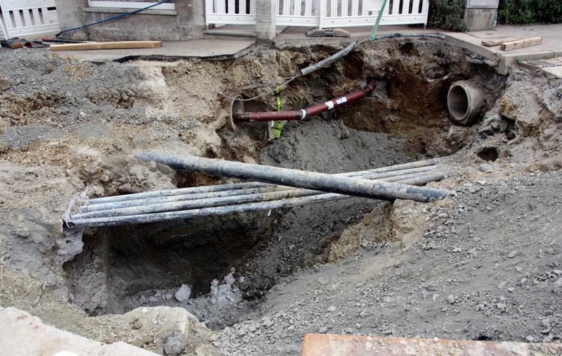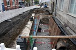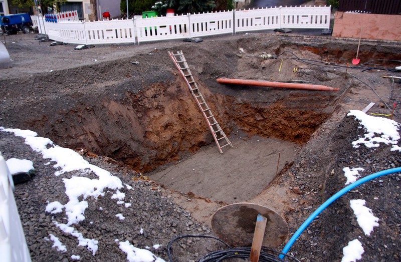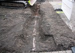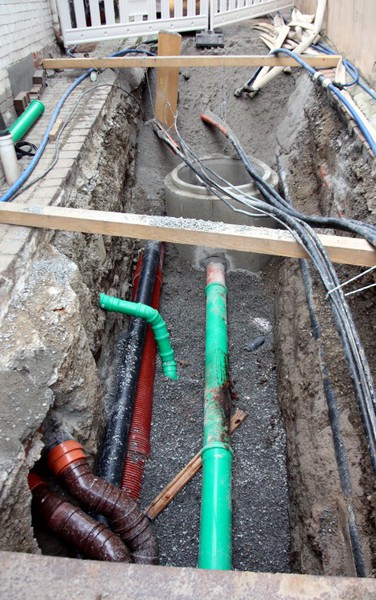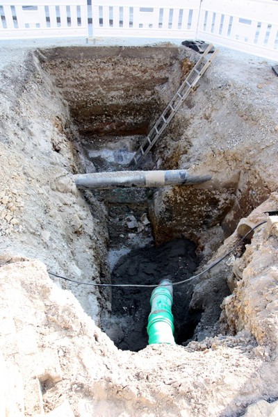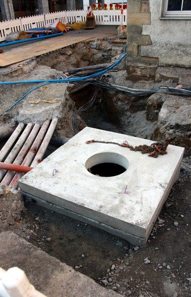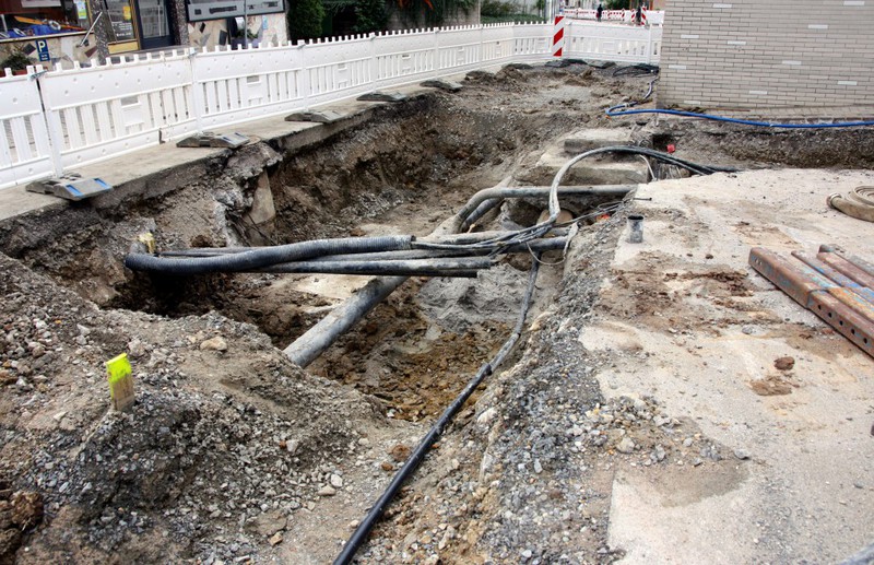 offensichtliche Anzeichen für die Baustelle ist der zwischenzeitlich weitläufig ausgehobene Graben – so stellt man sich die Baustelle vor. Hier wurden auch weitere neue Hausanschlüsse fürs Abwasser