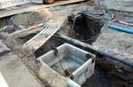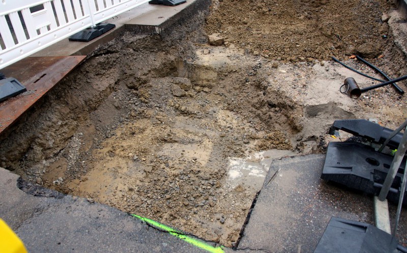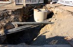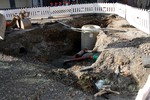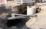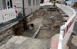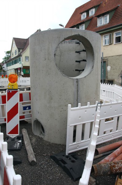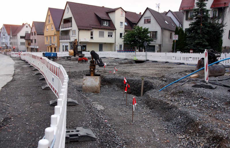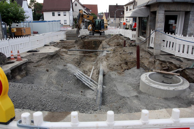Zu Beginn der Woche wurden an verschiedenen Stellen Löcher in Richtung des zentralen Hauptabwasserkanals gegraben. Es wurden hier neue Zugänge für die Hausanschlüsse geschaffen. Fraglich ist, weshalb die Löcher wieder zugeschüttet werden. Einen zweiten Bauschwerpunkt gab es vor dem Abzweig der Ludwigsburger Straße. Hier ist ein neuer Schacht für den Abwasserkanal der Ludwigsburger Straße eingebaut wurden. Zudem wurde begonnen den alten Abwasserkanal auszubauen.
