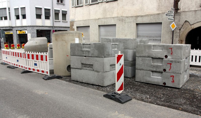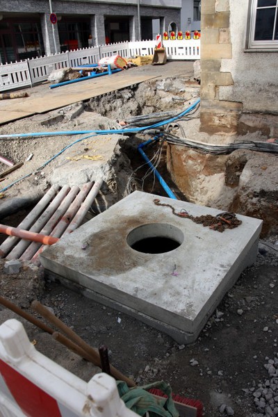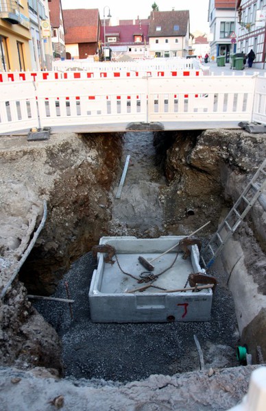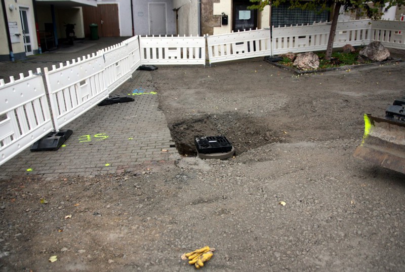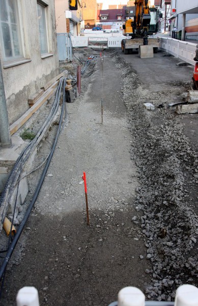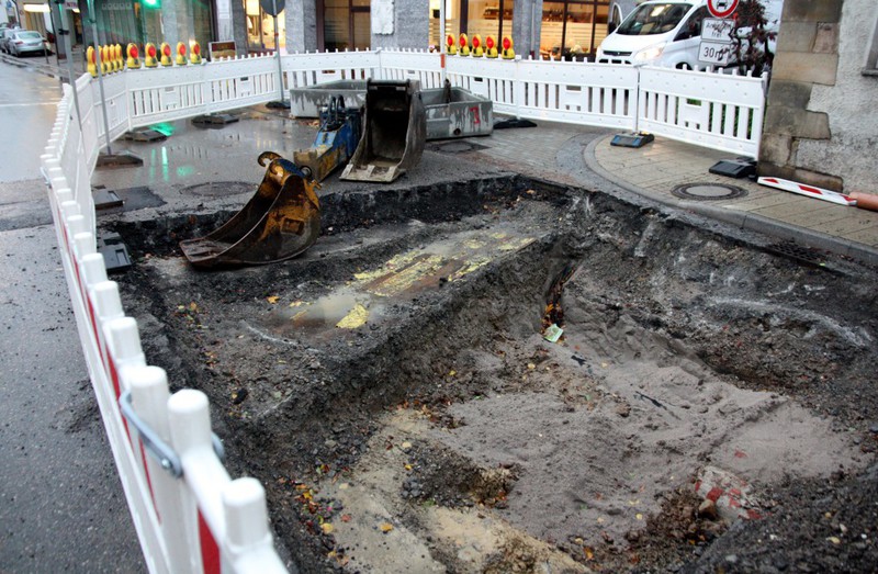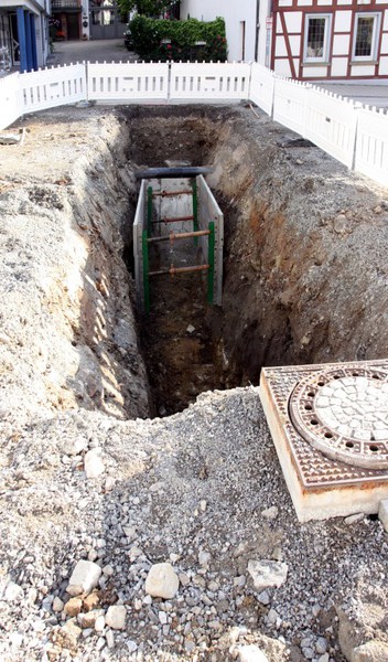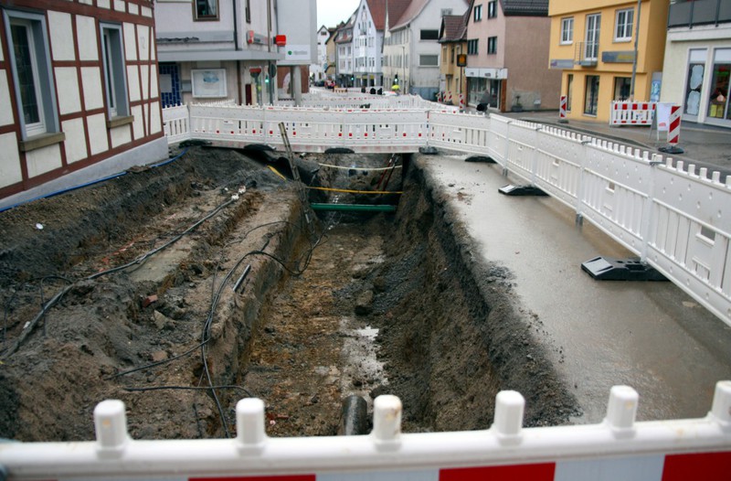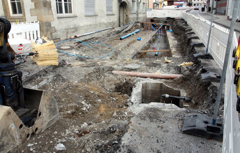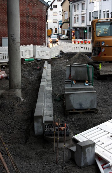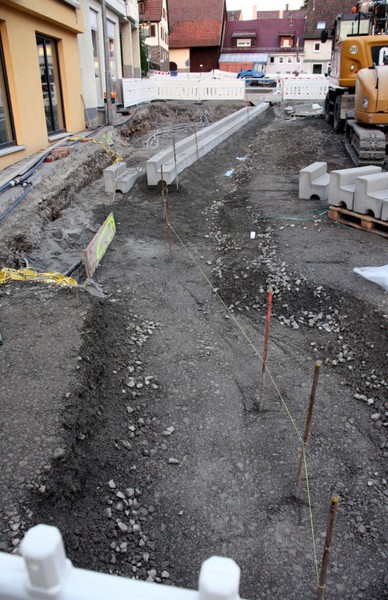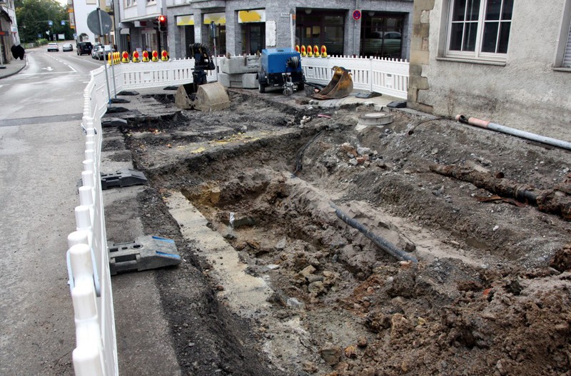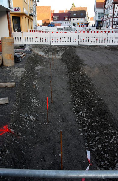Hexengässle selbst passierte deshalb nicht viel. Ansonsten wurde weiter der alte Abwasserkanal entfernt bis über den Vaux-Le-Pénil-Platz hinaus. In diesem Baustellenbereich werden die Gräben aber