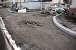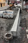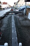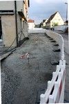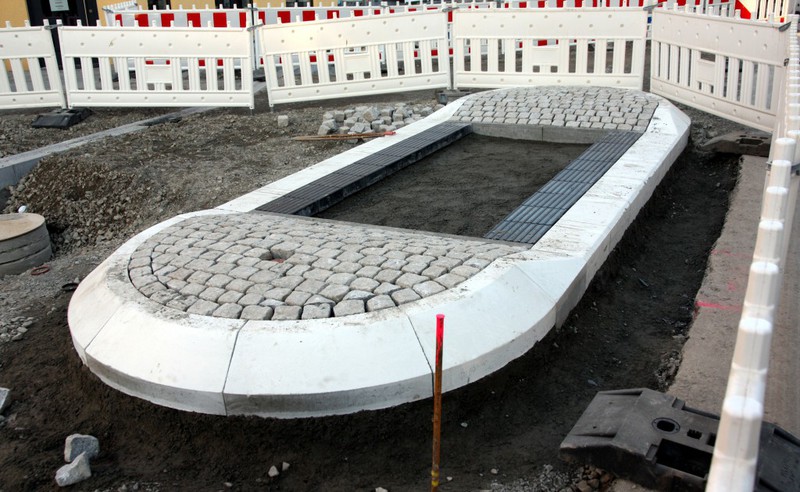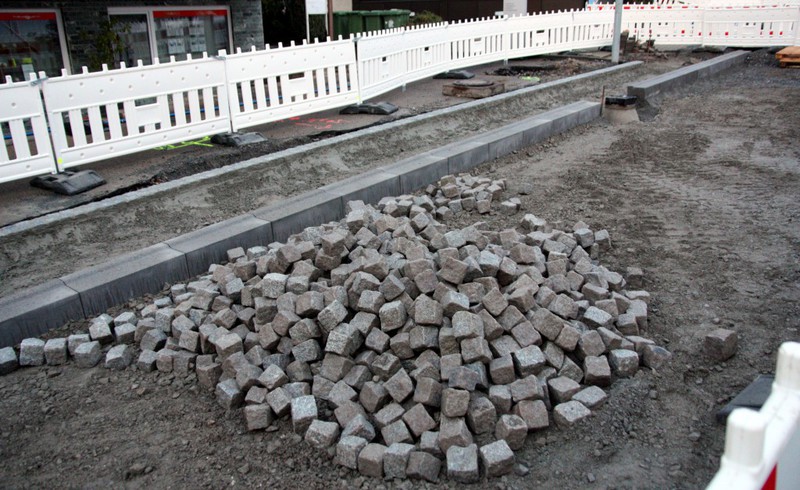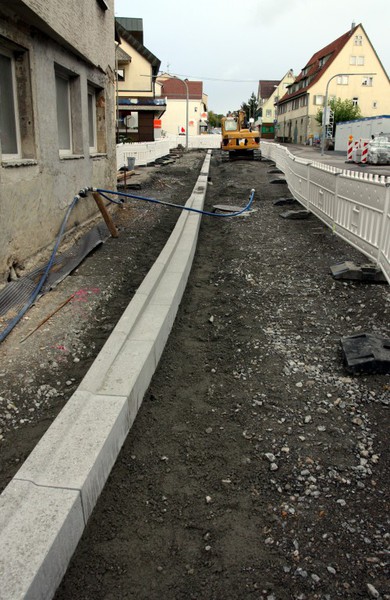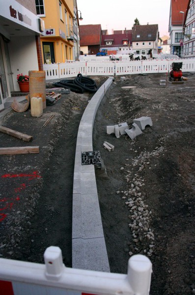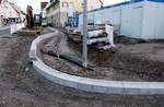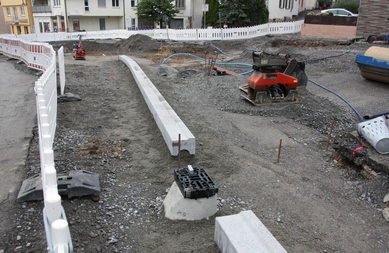 - Randsteine auf der östlichen Baustellenseite und Vorbereitung auf der südlichen Seite