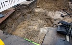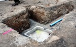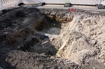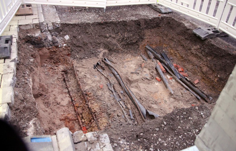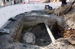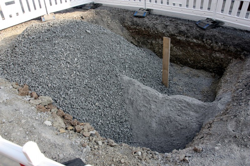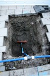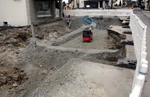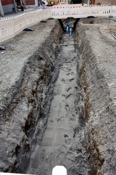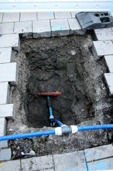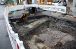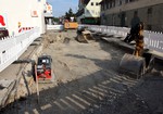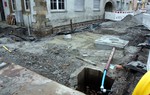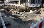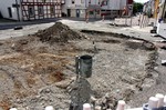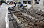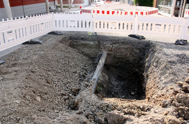 Jetzt geht es auch am Vaux-le-Pénil-Platz los. Dort wurde ein Loch für die Technik für die Wasserspiele ausgehoben. In der nächsten Woche soll hier eine Spezialfirma kommen, welche die Wassertechnik