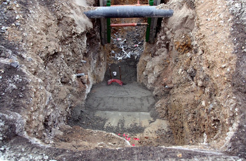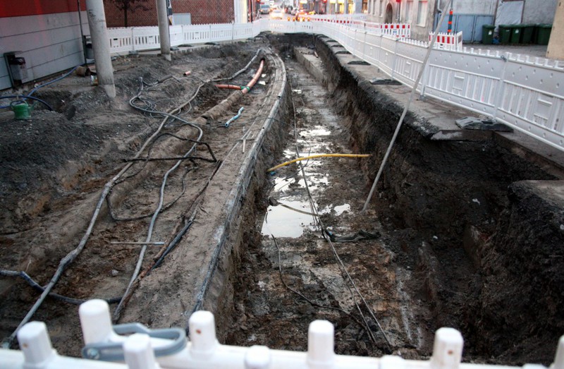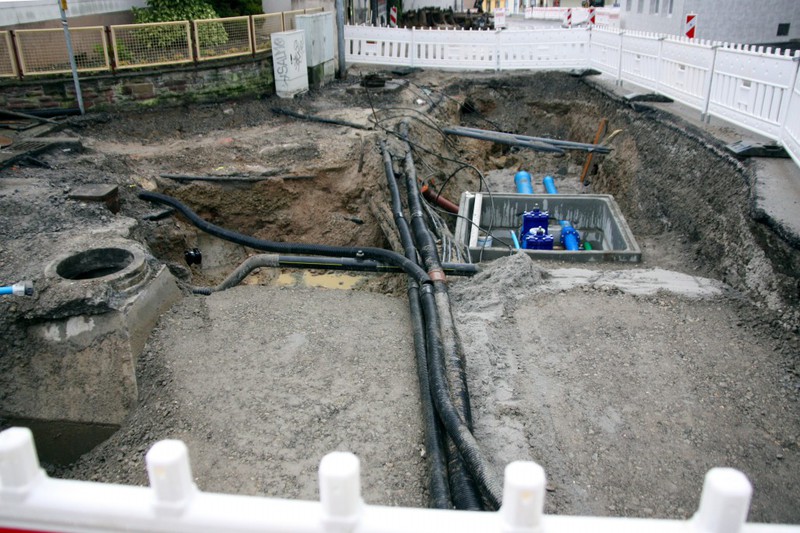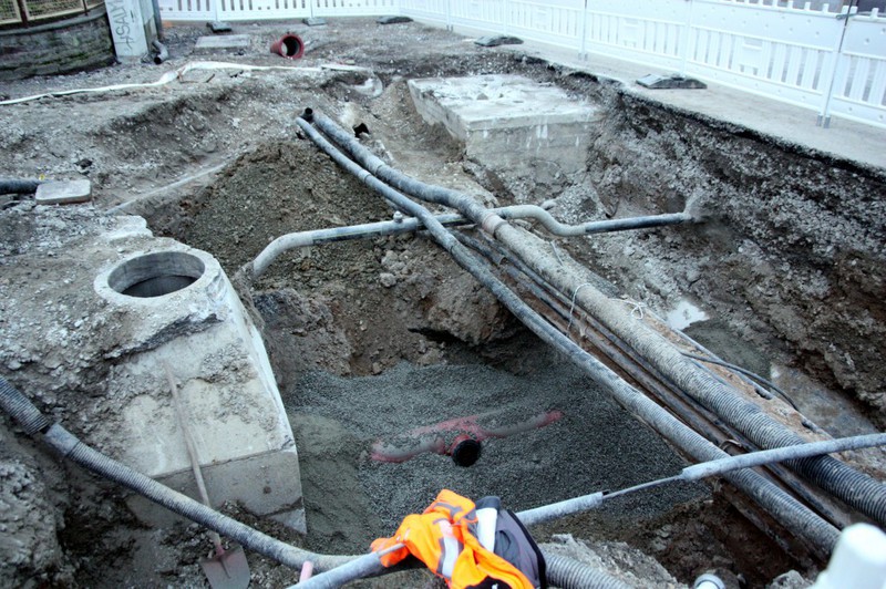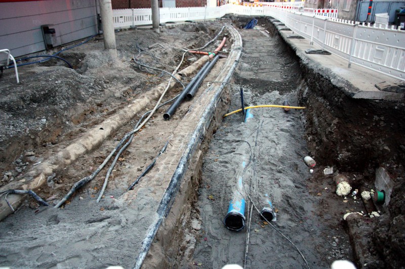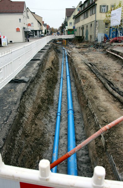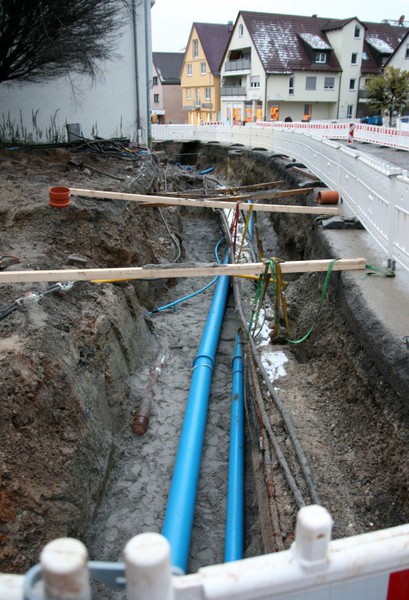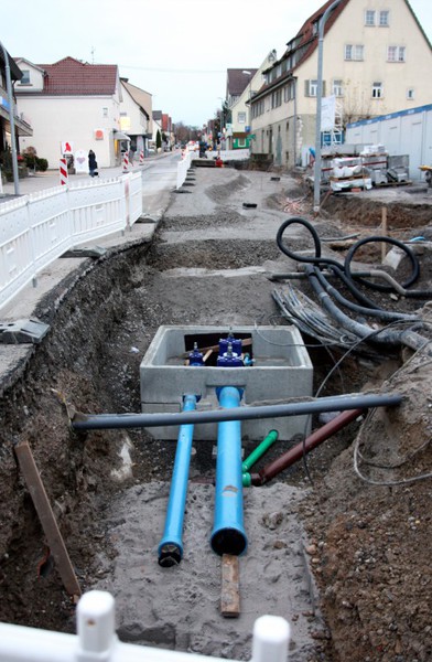 - Weiterverlegung von neuen Wasserleitungen im zentralen Baugraben